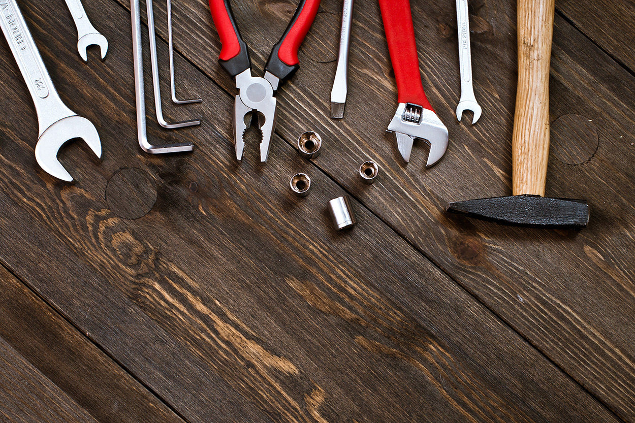 tools on a wooden background